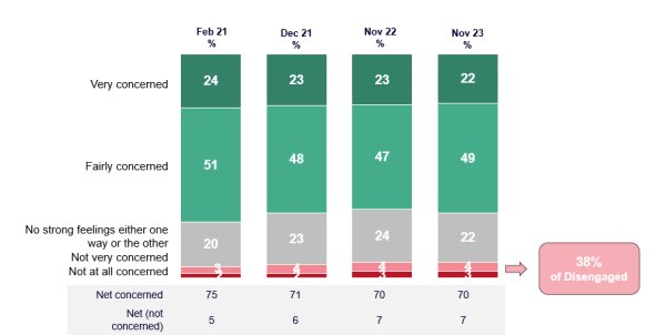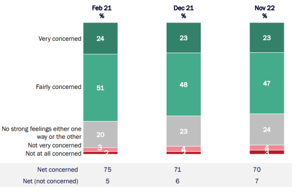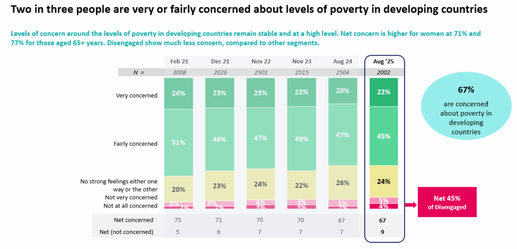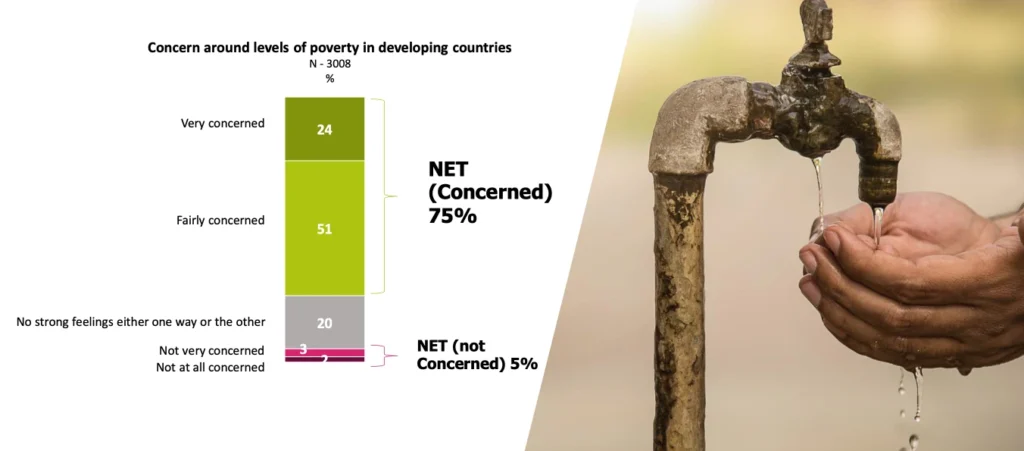 75% of respondents to the survey are concerned about levels of global poverty
