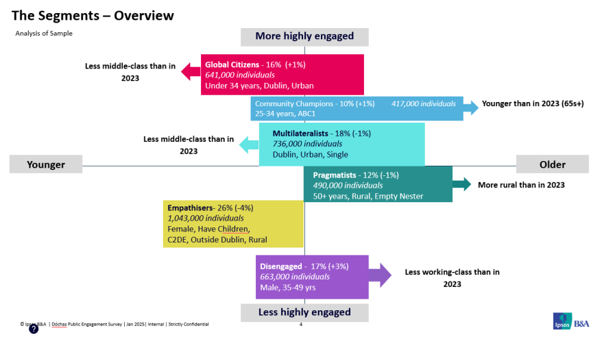 Given the significant cuts in aid, trend towards cutting aid in favour of defence spending, moving to more transactional models, and increasing international instability, this year’s agile ‘Part B’ topic explores Irish attitudes to shifting geopolitical trends – specifically exploring reactions to international aid cuts, perceptions of Ireland’s role in peacebuilding and neutrality, and gauging concerns around mis- and disinformation, as well as the rise of far-right narratives.