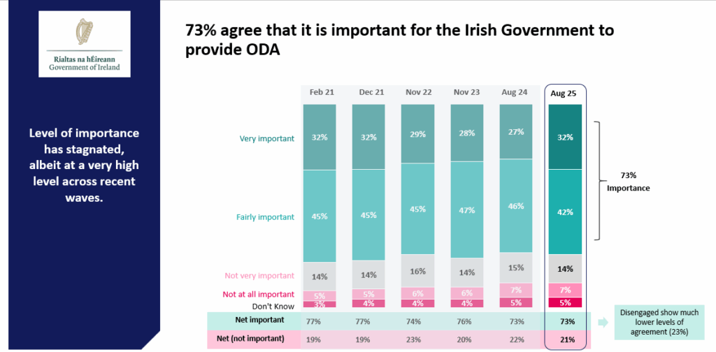 73% believe it is important that the Irish Government provides overseas aid, down from 76% in 2023