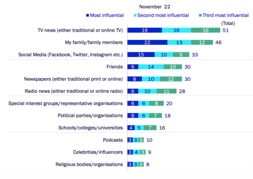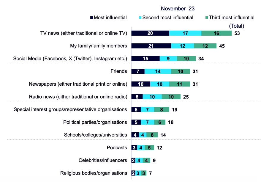 Greatest Influence on views and opinions on key issues