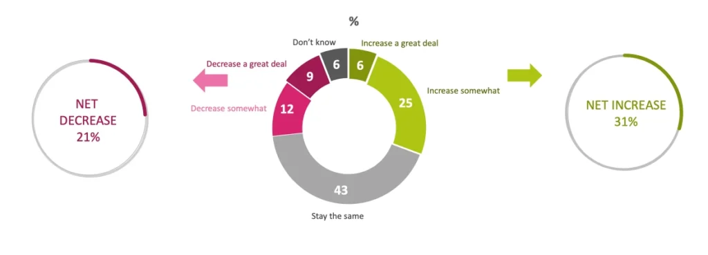 77% of respondents feel it is important that the Irish Government’s provides overseas development assistance (ODA); 31% advocated for an increase in ODA spending; 21% proposed a decrease; and 43% felt the ODA budget should remain the same.