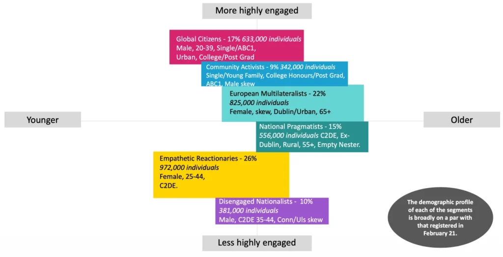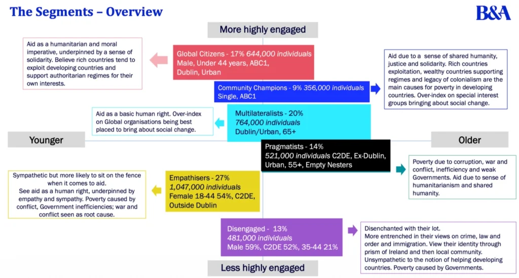 Explore the different Waves of research below to learn about Irish public attitudes toward development, their views on key socioeconomic issues, and the agile ‘Part B’ topic, which changes with each Wave. Use the Worldview Dashboard on the ‘Overview’ page to visually compare year-on-year trends across Waves, and visit the ‘Segments’ page to examine Worldview’s audience segments, which provide detailed insights into the views of distinct cohorts and highlight the importance of segmentation in shaping effective public engagement strategies.